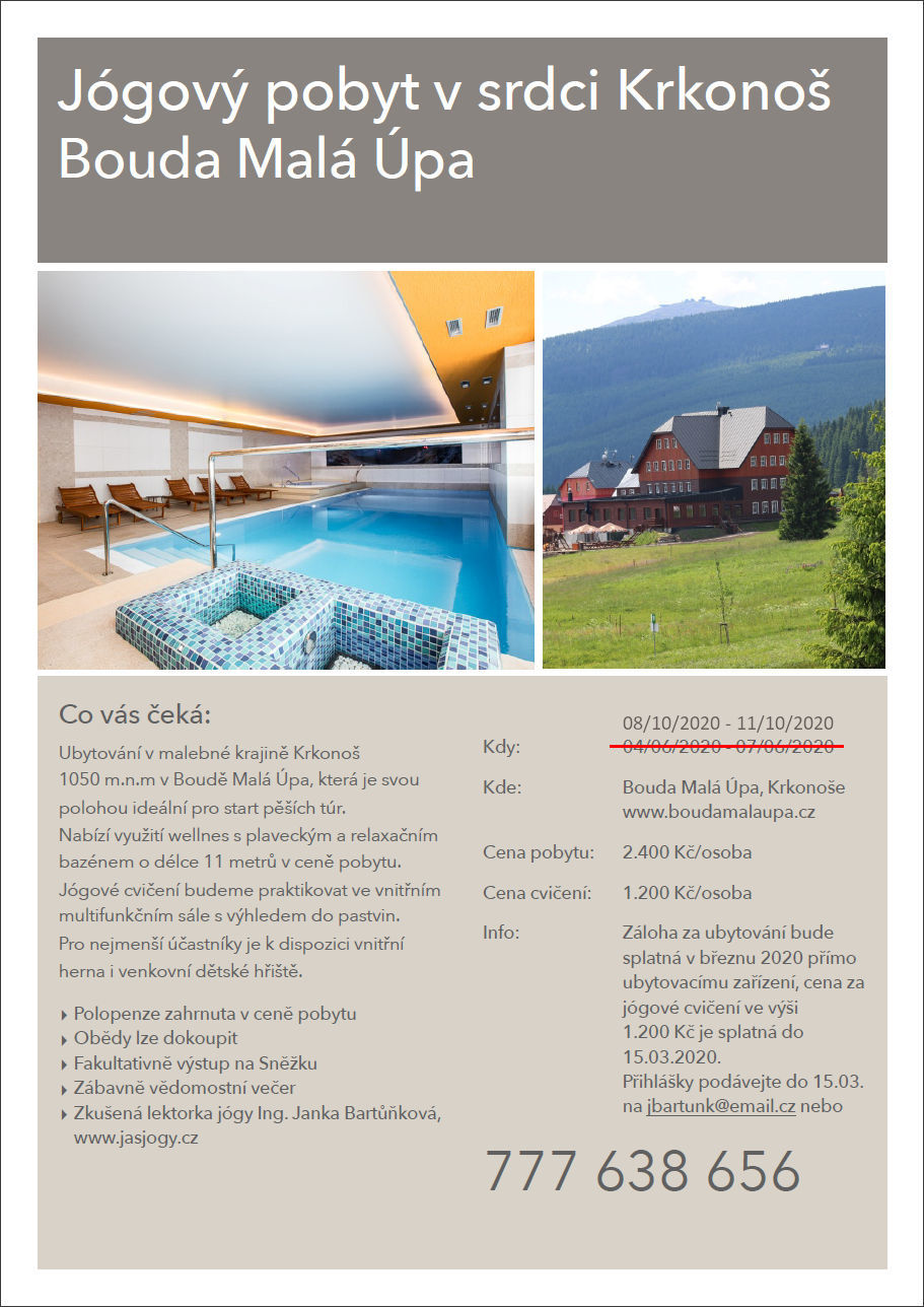 - [8. - 11. 10. 2020] Víkendový jógový pobyt v Malé Úpě